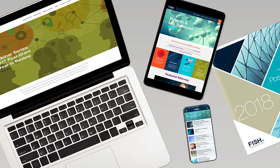 For more than 8 years I have partnered with one of the worlds top intellectual property law firms, Fish & Richardson, to create a wide variety of marketing materials, from websites, to mobile apps, to brochures and photography. Fish has put their trust in Kobilis Design for reliable and effective creative services, and continues to do so when in need of innovative and forward thinking materials in this extremely competitive industry.